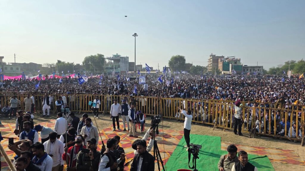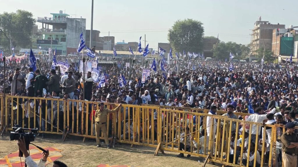 जिले के इंदरगढ़ तहसील में महा परिनिर्वाण दिवस के अवसर पर आजाद समाज पार्टी और भीम आर्मी द्वारा संविधान बचाओ महारैली का आयोजन किया गया। इस कार्यक्रम में सांसद चंद्रशेखर आजाद रावण और भीम आर्मी के राष्ट्रीय अध्यक्ष समेत पार्टी के कई प्रमुख अधिकारी उपस्थित रहे। बड़ी संख्या में पार्टी के कार्यकर्ता और समर्थक भी इस कार्यक्रम में शामिल हुए। घटना के दौरान किसी प्रकार की अशांति की संभावनाओं को ध्यान में रखते हुए पुलिस के 2000 जवानों को प्रत्येक जगह तैनात किया गया था। इसके अलावा, पूरी घटना की ड्रोन कैमरों से निगरानी की गई। आपको यह जानकारी दे दें कि ग्वालियर-चंबल क्षेत्र में संविधान पर राजनीतिक गतिशीलता बढ़ी हुई है। ग्वालियर में हो रही रैली के बाद, आज दतिया के इंदरगढ़ तहसील में संविधान बचाओ महारैली में चंद्रशेखर आजाद ने सबसे पहले संविधान की शपथ दिलाई और कहा कि एक साजिश चल रही है। कुछ समूह बाबा साहब का नाम मिटाने का प्रयास कर रहे हैं, लेकिन यह कुछ लोग हमारी शक्ति को नहीं समझते, यदि हमने जोर से आवाज उठाई तो हलचल मच जाएगी। उन्होंने कहा कि इस समय देश में संविधान को कमजोर और कुचला जा रहा है। आजाद ने चेतावनी दी कि कोई ऐसी शक्ति नहीं है जिसने संविधान की ओर आंख उठाई, लेकिन हमें चौकस रहना होगा और आने वाले समय में वर्तमान सरकार को हटाना होगा। आजाद ने कहा कि अब जो मतदाताओं के लिए एसआईआर प्रक्रिया चल रही है, यह भी बाबा साहब की देन है, क्योंकि हर व्यक्ति को वोट देने का अधिकार होना चाहिए।